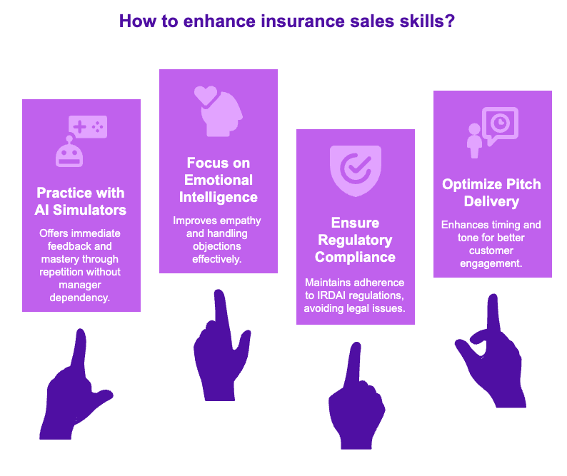 Insurance sales rely heavily on consultative selling, emotional intelligence, and regulatory accuracy. AI coaching platforms train agents on how to: